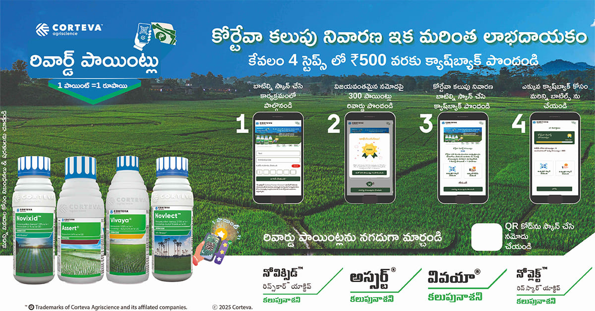 ఇప్పుడు కోర్టేవా రివార్డ్ ప్రోగ్రామ్ ద్వారా మీరు ప్రతి నొవిక్సిడ్™, నొవ్లెక్ట్™, అసర్ట్™, వివాయా™ కొనుగోలుపై ₹500 వరకు నగదు గెలవవచ్చు.